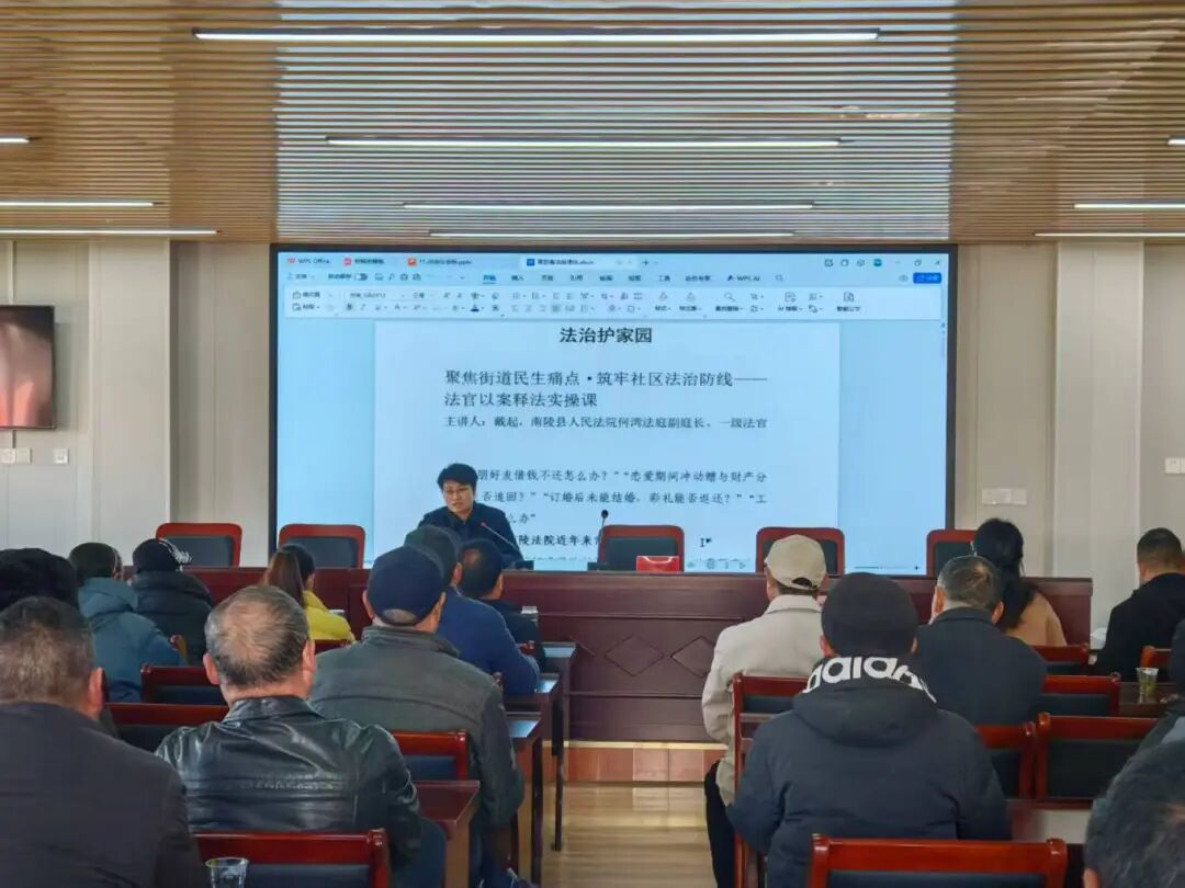 “原来没签劳动合同也能依法索赔,这些法律干货太实用了!”11月28日,三里镇社区普法活动现场,一名参与互动的党员感慨道。为深化党建与法治建设深度融合,筑牢社区法治防护网,南陵县法院戴起法官走进街道,开展“聚焦民生痛点,筑牢社区法治防线”以案释法实操课。